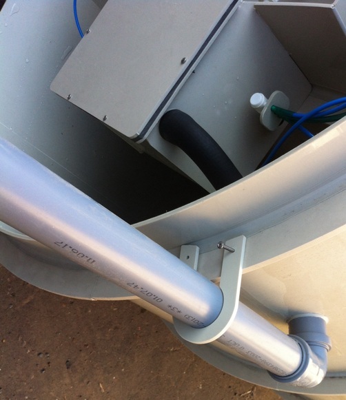 Выход. Предназначен для присоединения отводящего трубопровода по которому очищенная вода будет уходить в систему водоотведения. Располагается с противоположной стороны от входа в верхней части Станции. Представляет собой стандартную канализационную трубу Ф110 мм.