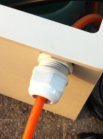 Электропитание для насоса может быть обеспечено «отдельно», либо (что правильней) от розетки в моторном ящике. В этом случае, необходимо установить в стенку моторного ящика еще один кабельный ввод и завести провод от насоса в ящик. К сожалению, сделать это не отрезав «штатную» вилку насоса невозможно, что ведет к потере гарантии на насос. Поэтому выбор способа подключения насоса остается за вами. Важно! Заводить провод насоса в ящик иначе, чем через кабельный ввод категорически запрещено, так как нарушает герметичность моторного ящика.